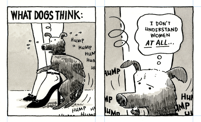 Dustin Harbin Comics|Blog|Work|Store Patreon | Instagram | TwitterInprnt | Threadless | Society6email: DUSTY[at]DHARBIN[dot]COM Home||Comics|Blog|Store| Archive|RSS||<< First|Last >>||< Previous|Next > WHAT DOGS THINK. The eternal struggle.